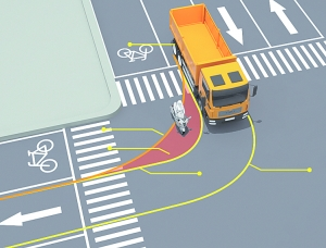 由搅拌车、渣土车、重型卡车为代表的大型车辆,从驾驶室位置来看,右侧盲区非常明显,据权威数据统计,由于右转盲区造成的伤亡事故占该类车型总的事故比例在75%以上。从驾驶室位置来看,右侧盲区非常明显,当驾驶机动车的人或行人停在右侧等待或者行驶中,大车驾驶员是完全看不到右侧的情况,在没有预警提醒的情况下,很容易造成交通事故。