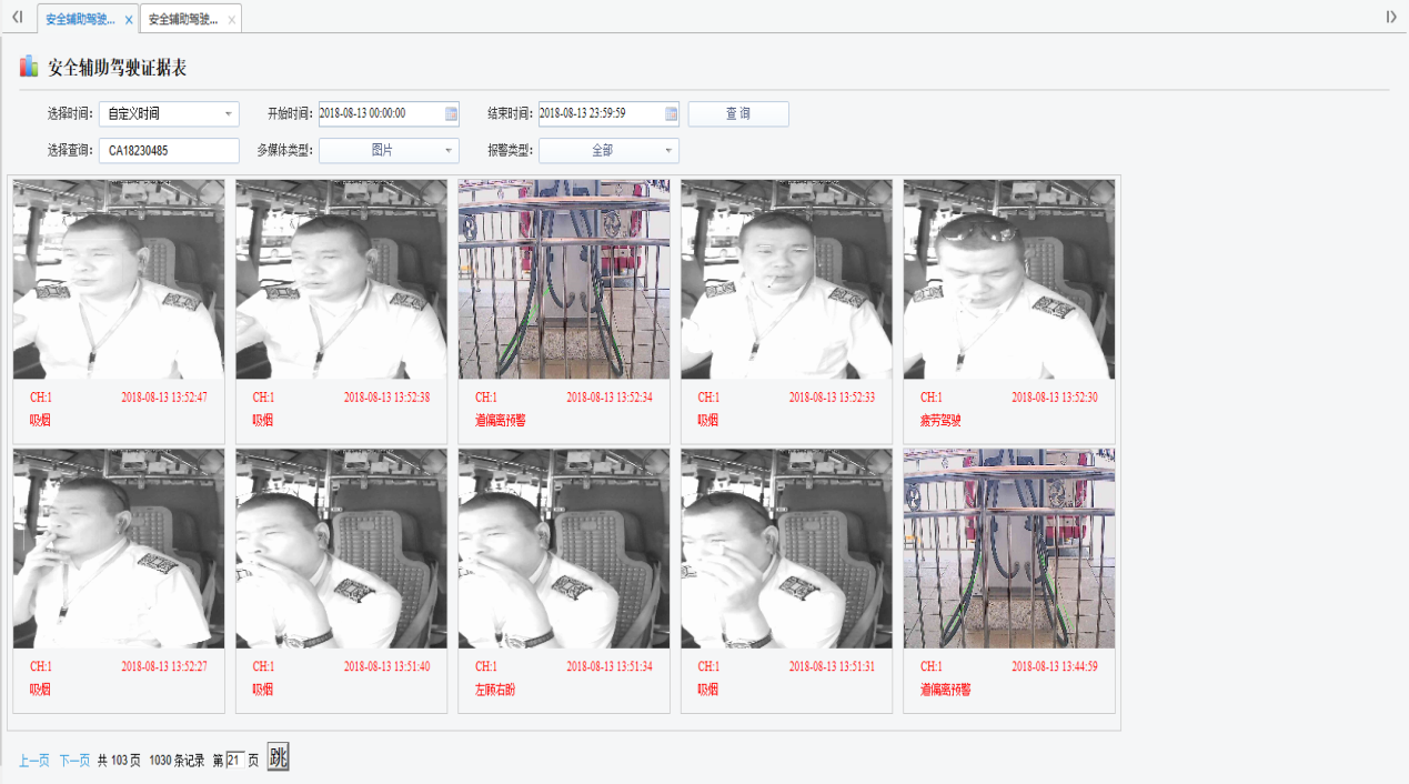 安全驾驶辅助系统: 通过车载主机的AI智能摄像机ADAS+DSM,智能识别司机打哈欠、闭眼、抽烟、打电话、喝水、左顾右盼并提醒注意行车安全,同时对车辆前车碰撞预警FCW、车距过近预警HMW、车道偏离预警LDW。