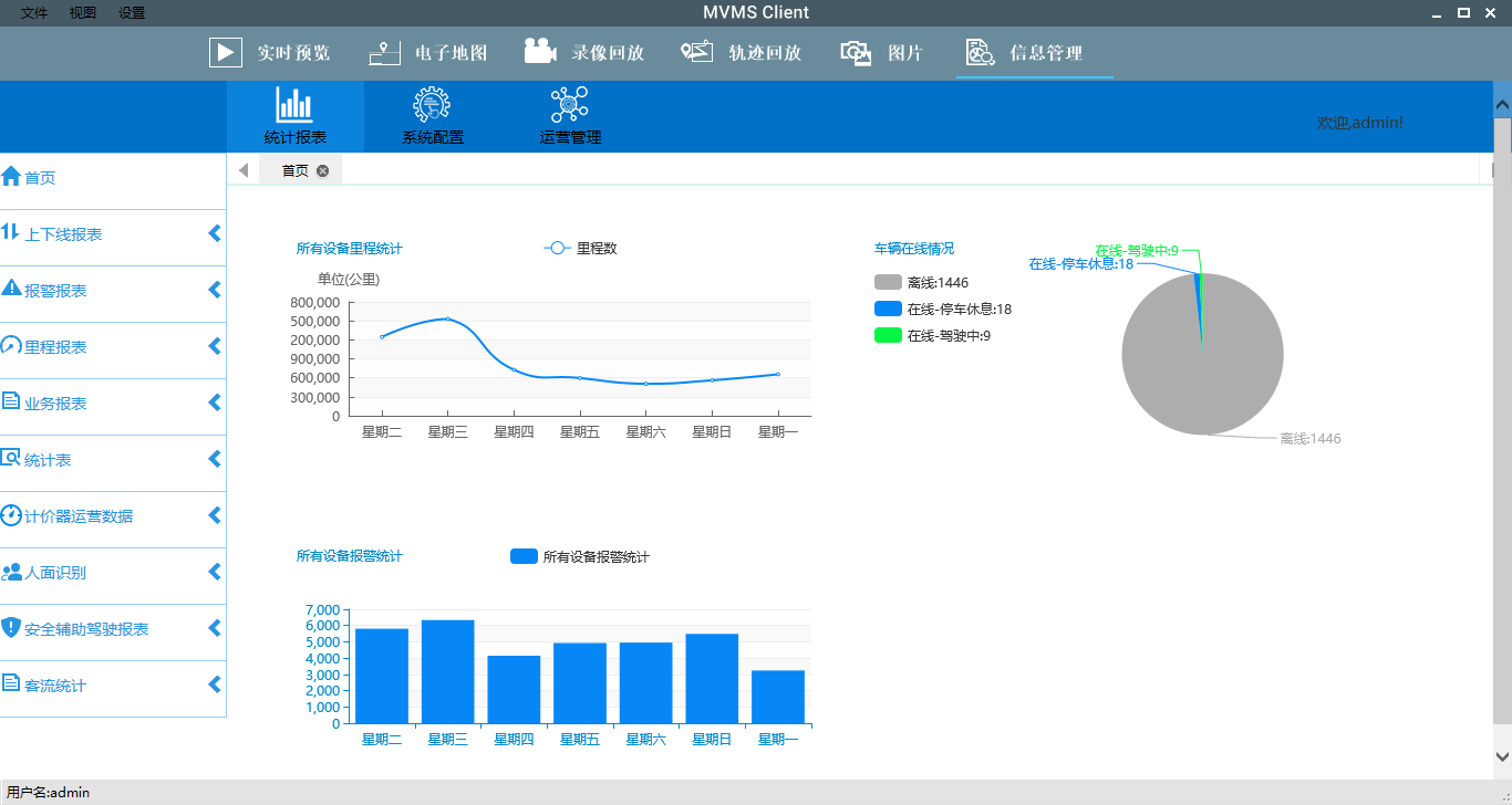 全程监控: 对车辆进行实时视频监控,可远程查看各现场情况和历史视频数据,在车辆左右转向时,车内可动态切换显示对应位置的视频画面,给司机提供驾驶辅助;通过GPS高精度定位实时了解每辆车所在位置及车辆当前状况,一旦超出预设的线路运输即可报警,同时可调出车辆行驶的历史轨迹;